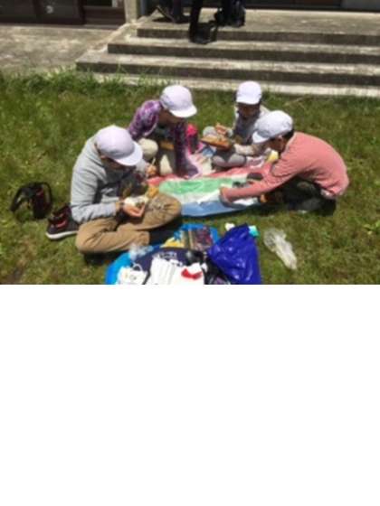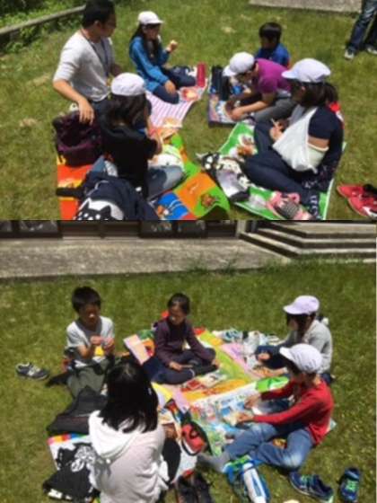 天気よし、気温もちょうどよく外でお弁当です。清々しいです。保護者の皆さん、朝早くからのお弁当作りありがとうございます。
