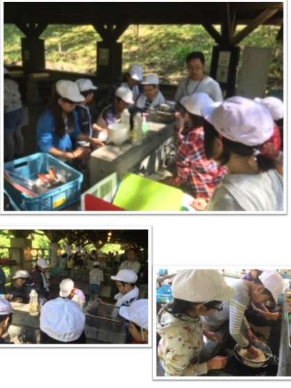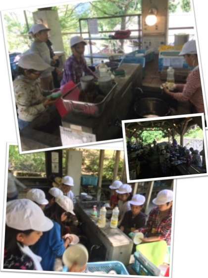お昼ご飯を食べて、少し休んだら「野外炊事」をします。ちょっと詰まっていますがちょうどいいくらいなんです。