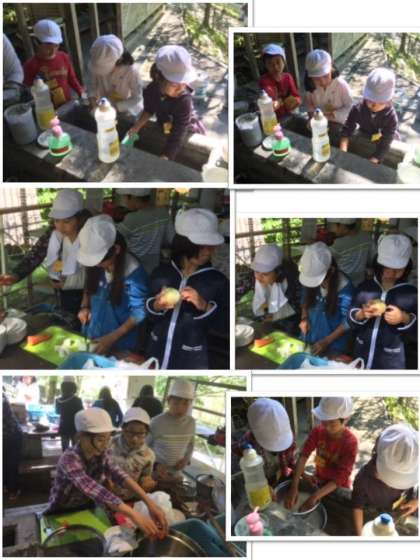 慣れた手つきで野菜を切る友だちもいれば、ちょっと危なっかしい手つきまで様々です。火の番をする役、洗う役、みんなで協力して作るとおいしく感じます。出来栄えはどうなんでしょう。この後の連絡を待ちます。
