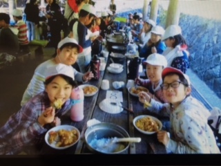 カレーが出来上がりました。みんなでいただきます。苦労の結晶なのでおいしいに決まっています。笑顔で食べる様子もおいしさを感じさせられます。ちょっと早めの夕食なので、たっぷり食べておくことが大切です。