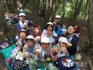 みんなおなかがすきました。頂上で食べるお昼は、格別です。しっかり食べて、下山に備えましょう。