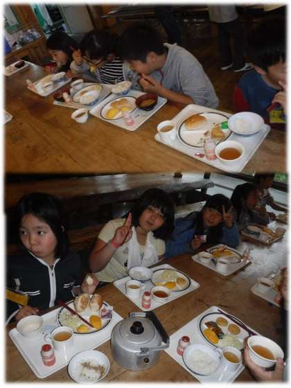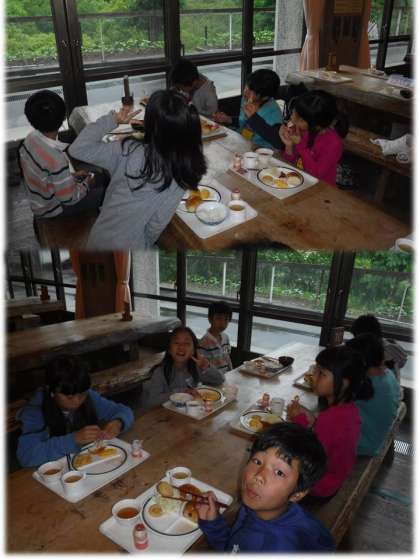 昨日の登山のおかげでぐっすり眠った子どもたちは元気いっぱいです。朝ごはんでもエネルギーをしっかり充填しています。おかわりを何回もしている様子が見られます。今日も全力で楽しむ準備はできました。