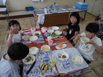 デザートには冷凍みかんつきました。「かき氷みたいにシャリシャリして冷たい!」「家でもみかんを冷凍してみよう。」といろいろな感想がありました。