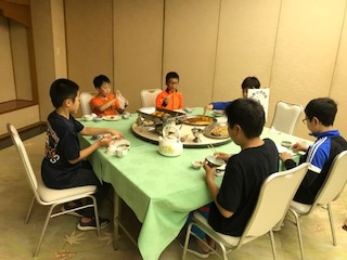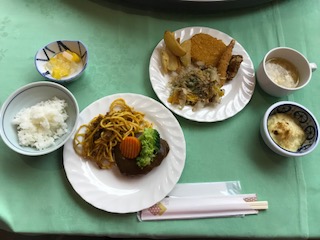 みんなモグモグ食べ,男子テーブルも,女子テーブルも完食しました!