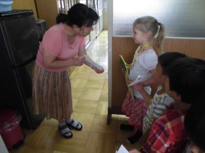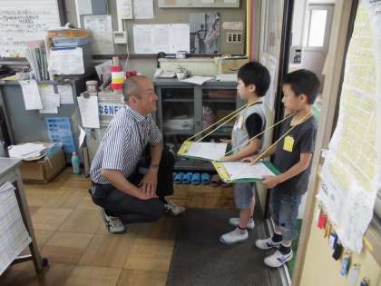 1年生は学校探検をして,不思議に思ったことやもっと知りたいことを先生たちに聞きに行っています。先日は,ドキドキ緊張しながら校長室に入り,質問をしてきました。「校長室にある金庫には何がはいっているのですか。」「教頭先生の好きな食べ物はなんですか。」などなど。