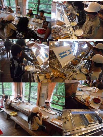 昨日は5時ごろに夕食が終わり、みんなおなかがすいているようです。でも、バッフェスタイルになれず、どのくらいとるのかわからなかったようです。少ししかとっていません。でも、みんな食べ進むにしたがって、どんどんお代わりをしています。食欲はあります。ポテトに人気が集中して途中で追加です。出ていたおかずはほぼなくなりました。 みんな元気です。