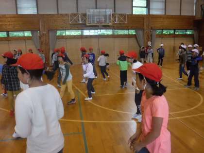 三校それぞれをabcdの4チームに分け三校合同のAチームBチームCチームDチームを作りました。最初は、投げ方がわからず苦労しましたが、うまく投げる友だちを見て、投げ方が上達しています。