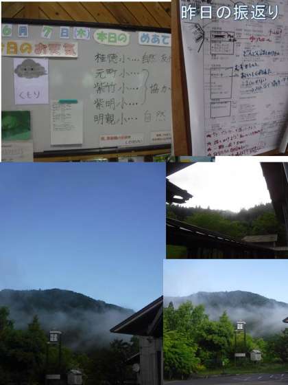 昨日の雨から打って変わってとても青い空が広がっています。山に登れそうです。部屋を覗くと、6時5分ごろには「もう用意できてます。」という声が聞かれました。昨夜からずっと静かです。睡眠もばっちり、登山にちょうせんできます。