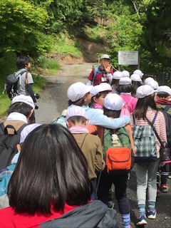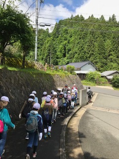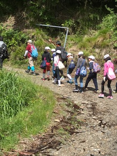 山の家の職員さんを先頭に,天狗杉という山を登っていきます。