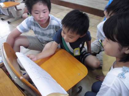 国語科で学習した「くちばし」の単元。学習したことを生かして,図書室にある本で自分たちの「くちばしクイズ」を作りました。そして,4年生に問題を出して答えてもらいました。1年生は,「4年生がクイズの答えを考えてくれたのがうれしいです。」などの感想がありました。