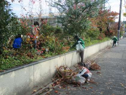 11月10日(土),良いお天気のもと,元町愛護会が中心となって進めていただいている「グリーンベルト清掃」が実施されました。10月は,本校の運動会と重なりましたが,11月は,多くのPTAの方々や,児童も参加しました。学校の周りが大変美しくなりました。