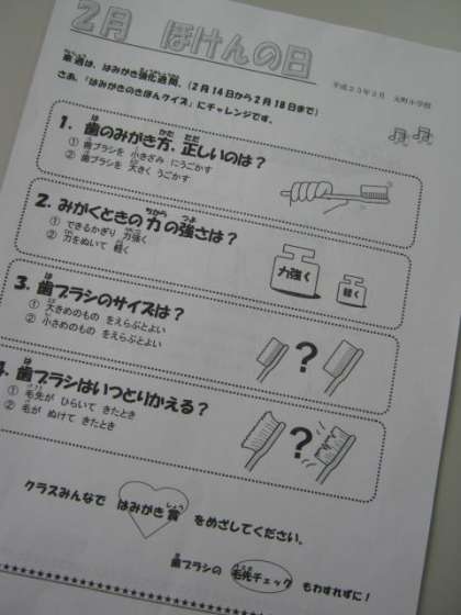 今回は,事前に「はみがきのきほんクイズ」にチャレンジしてもらいました。(2月保健の日資料)