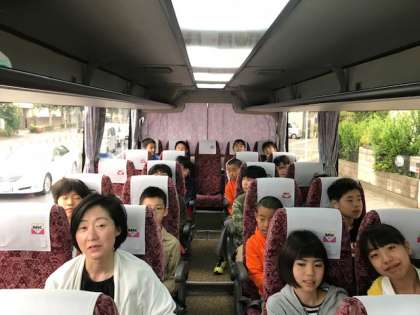 バスに乗って出発しました。始めは静かでしたが、だんだんとテンションが上がってきました!