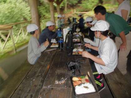 美味しそうに焼けたイワナは,洋食弁当とともに食べました。