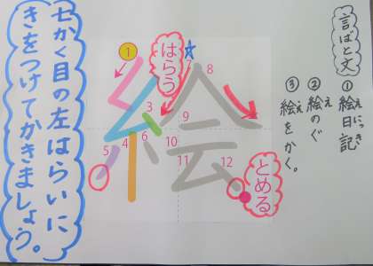 今日も あたらしく 学しゅうする かん字の きをつける ポイントを のせます。ていねいに れんしゅうしましょうね。