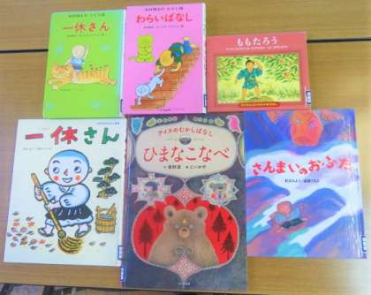 さて 今日は 国語で学しゅうする 「いなばのしろうさぎ」に ちなんで 学校としょかんにある むかしばなしを みんなに しょうかい します。みんなも しっているはなしや はじめて見る おはなしも あります。としょしつには もっともっと たくさん あります。学校が はじまったら よんでみてください。