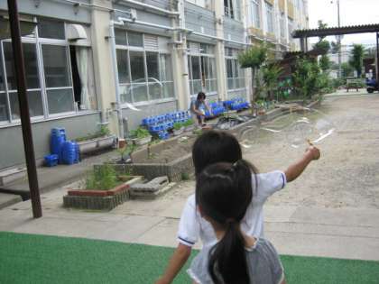 ろ組と2年生の交流で,シャボン玉を楽しみました。