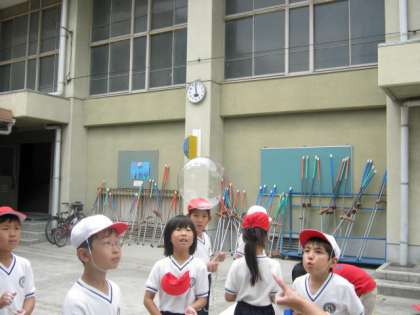 何回かやっているうちに,大きなシャボン玉がとばせる子どもがでてきました。