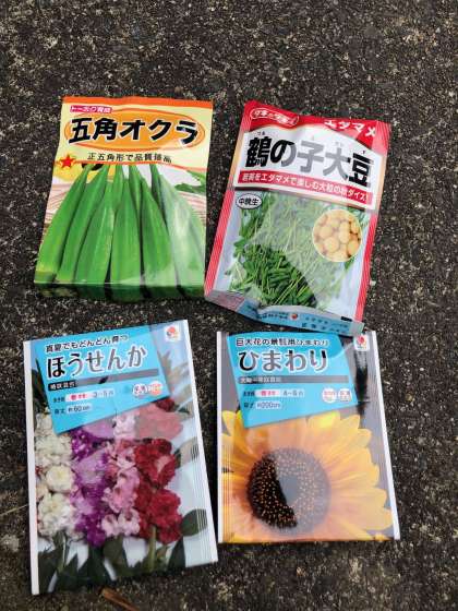 臨時休校が延びたので,理科の「たねまき」の単元に出てくる,ヒマワリ・ホウセンカ・ダイズ・オクラの種をまきました。