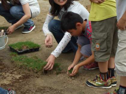 「学校敷地内における芝生空間の整備事業」の一環として行われるも