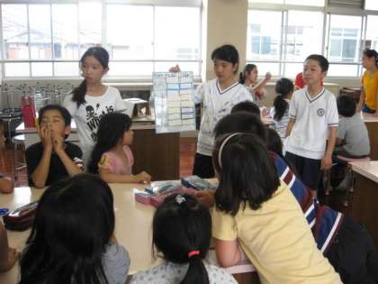 ました。高学年のみなさんがにていねいにやさしく教え,低学年の