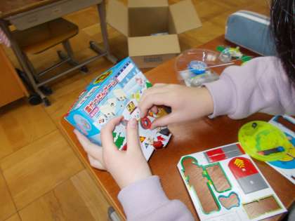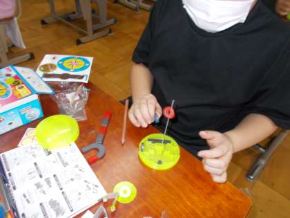 3年生の子どもたちは,理科の授業で使ったじしゃくのキットを使って,おもちゃ作りをしました。じしゃくの特性を生かしたたくさんのおもちゃで遊びながら,楽しい時間を過ごしました。