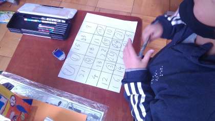 今日はみんな遊びの日でした。遊び係が「ビンゴ」を企画してくれました。25マスに1〜25までの数字を書きます。始まって間もなくすると,「ビンゴ!」と元気のよい声が聞こえてきました。