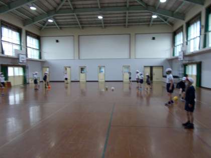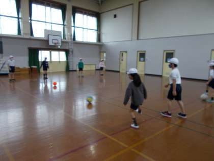 まっすぐにボールを蹴ることや片足でボールをドリブルすることは,なかなか難しく,みんな悪戦苦闘でした。