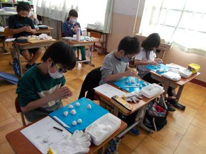 理科では,粘土の形をかえたり,アルミニウムはくを切ったりして重さをはかりました。形は変わっても,ものの重さは変わらないということが分かりました。粘土では,いろいろな形を作って,楽しく学習できました。