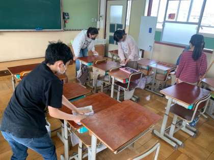 一年間自分たちが過ごす教室をみんなで声をかけないながら取り組んでいました。