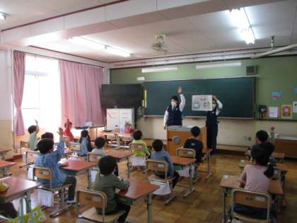 今日の3校時,ろ組では等身大の自分を作る準備をしていました。自分の大きさと同じものを作るので,とても驚いている様子が見られました。1年生は,教室での交通安全教室でした。きちんと北警察署の方のお話を聞き,交通安全についてしっかりと学んでいました。