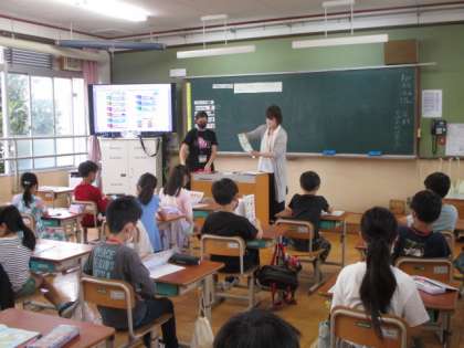 3年生は,漢字ドリルを使って漢字の練習をしていました。しっかりと書けているかどうかを担任の先生が点検していました。4年生は,外国語活動でHello world!の学習でした。英語担当とALTの先生から,世界のあいさつについて学んでいました。