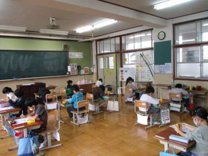 今日の5校時,1年生は国語ではなのみちの学習でした。絵を見ながら気づいたり考えたりしたことを発表していました。2年生は,算数で時こくと時間のテストをしていました。みんなしっかりと集中して取り組んでいたので,きっとできているのではと思っています。