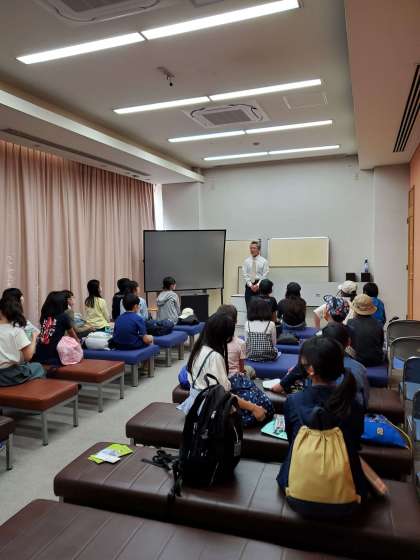 北淡震災記念公園に到着しました。記念撮影をした後は館内に入り、所員の方から震災のお話を聞いています。