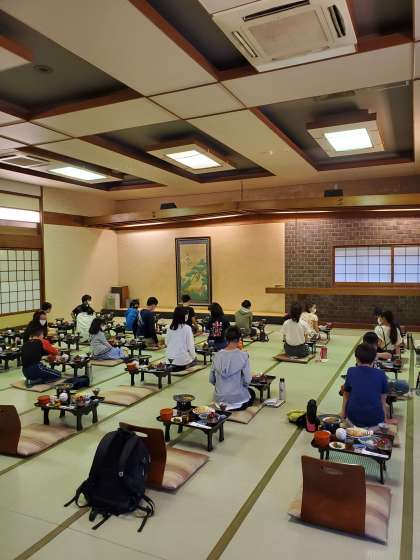 夕食の時間の様子です。子どもたちは黙食を守って食べています。