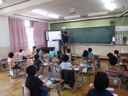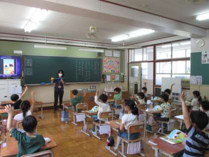 今日の5校時,1年生は国語でぶんをつくろうの学習でした。大型テレビに映し出された絵を見て,自分が考えた文を積極的に発表していました。2年生は,国語でたんぽぽのちえの学習でした。何かカードに書き込む活動の説明が,担任の先生からあったようです。