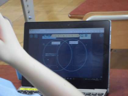 6年のテーマは「まわりの人と心でつながろう」。昔と今の通信手段の違いを知り,文字だけで謝られるのと,直接会って謝られるのとで自分が感じることを,ベン図に書き込む学習をしていました。文字だけでは,表情や声からの様子が伝わらないので,相手の本当の気持ちがわかりにくいことを実感していたようです。SNS等は便利ですが,使うときに気を付けることがわかったのではないでしょうか。