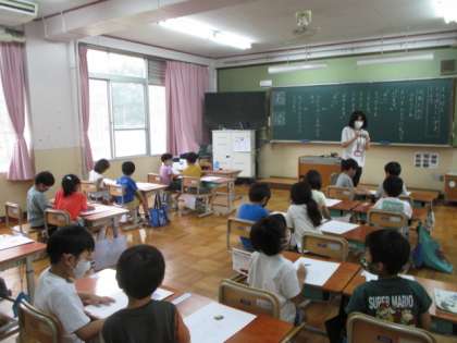 今日の5校時,ろ組では国語で文字をきちんと書く学習をしていました。ひらがなが書かれている立方体からお題の文字を選び,ひらがな・カタカナ・漢字を正しく書いていました。1年生は,国語でくちばしの学習でした。自分たちで作ったくちばしクイズを,ペアで出し合っていました。2年生は,算数でたし算・ひき算の筆算の学習でした。先生から出された問題に熱心に取り組んでいました。