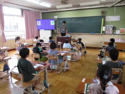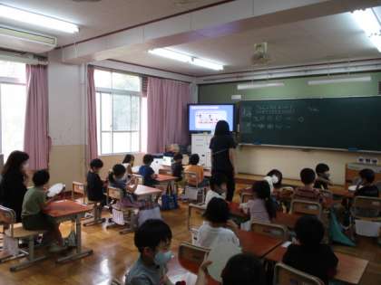 今日の5校時,ろ組では生活単元学習でした。先生の紹介インタビューをする内容を,いろいろと考えていました。1年生は,音楽で「たん」と「たた」でリズムを作る学習でした。その後は,うみの歌のイメージを発表していました。2年生は,生活科で小さな友だちの学習でした。知っている生き物をどこで見たことがあるのかを考えていました。