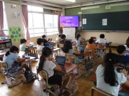 こちらは,3・4年生の様子です。タブレットドリルの学習やプールのきまりの指導などがありました。
