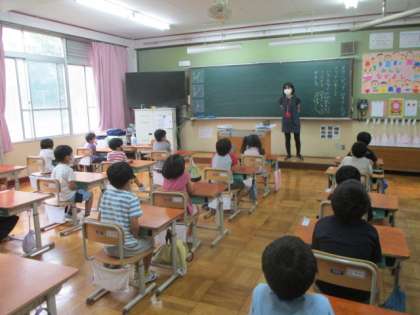 今日の3校時,1年生は道徳科オリンピック・パラリンピックの学習でした。オリンピックやパラリンピックに関心をもつことで,他国の人々や文化について親しもうとする気持ちを高めていました。2年生は,生活科で小さな友だちの学習でした。育てている動植物の変化について,みんなで観察する準備をしていました。