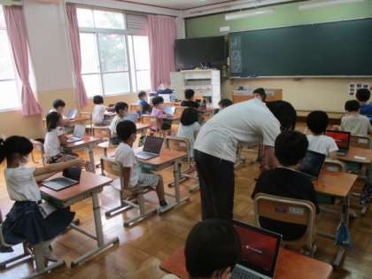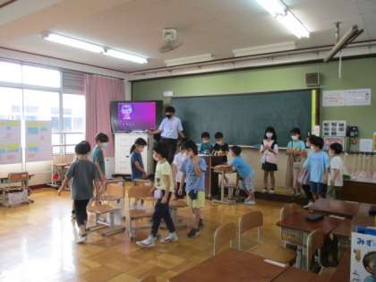 今日の5校時,ろ組では算数で合同な図形の学習でした。図形をかくために,どんなことが必要なのかを考えながら頑張っていました。1年生は,ミライシードに取り組んでいました。自分のタブレット端末からログインし,使う準備をしていました。2年生は,お楽しみ会をしていました。とても楽しそうに椅子取りゲームをしていました。