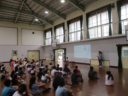 今日の午後に、体育館で第1回児童集会がありました。放送委員会や代表委員会など4つの委員会から、全校児童にむけてお知らせをしていました。6年児童が中心となって進めるとともに、発表を聞いている子どもたちの姿勢もとてもよかったのでいい集会になったのではと思っています。