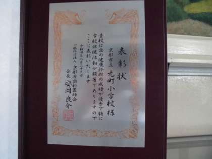 全校の児童のみんながよい歯だということで、昨年に引き続き、学校歯科保健優良校表彰で「特別表彰」をいただきました。夏休みの歯みがきカレンダーや生活リズムしらべの結果を見ても、1日歯をみがかない人はほぼいないので、歯みがき習慣がきちんとついているのだと感心しています。これはすばらしいことです。このよい習慣をずっと続けてほしいと思います。ご家庭でのご協力のおかげでもありますので、今後もどうぞよろしくお願いいたします。表彰の盾は玄関にありますので、ぜひご覧ください。