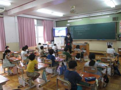 今日の5校時、ろ組では図工でお話の絵の学習でした。1年生も図工でお話の絵の学習でした。2年生は、書写で画の方向の学習でした。