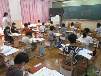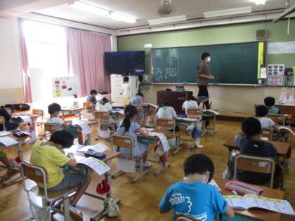 今日の5校時、1年生は算数でおおきさくらべの問題に取り組んでいました。2年生は、国語で新出漢字の練習をしていました。