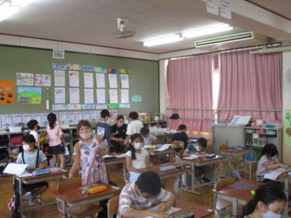 3年生は、国語で漢字の練習をドリルにして先生に点検してもらっていました。4年生は、国語でごんぎつねの学習でした。このお話についてのいろいろな意見が出ていました。