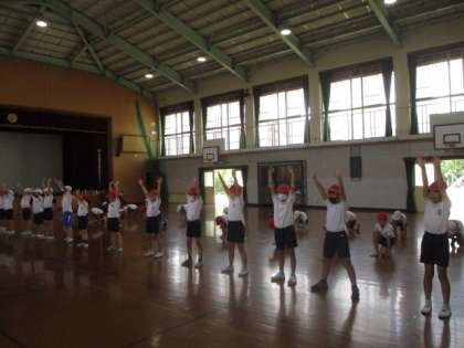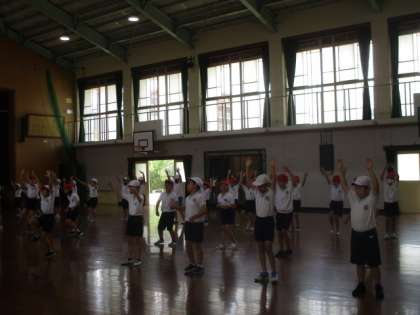 今日の3校時、3・4年生は体育館で体育フェスティバルの団体演技の練習をしていました。子どもたちはだいぶ動きを覚えられているので、手足をしっかりと動かしながら本番では顔を上げて胸を張り、そして堂々と自信をもって演技してほしいと思います。