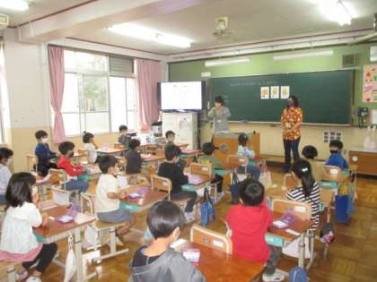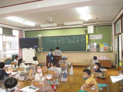 今日の5校時、1年生は英語活動でえいごとなかよしの学習でした。英語でのじゃんけんあそびを楽しんでいました。2年生は、書写で画のつき方と交わり方の学習でした。漢字を書くときに、書き始めや交わりの所に気をつけながら書いていました。