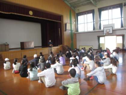さわやかな秋晴れのもと、5・6年花背山の家宿泊学習を実施することができました。これから随時、宿泊学習を様子をこのホームページでお知らせしていきます。今回は出発式の様子です。しっかりと話を聞いているのが伝わります。